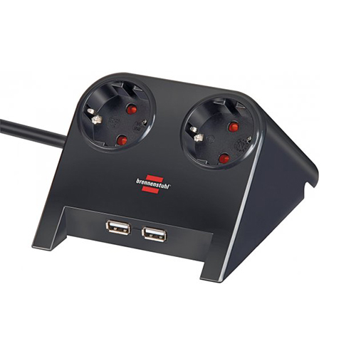 Brennenstuhl Desktop-Power, power strip 2-fold for the table (table socket with 1.8m cable, rubber feet and 2-fold USB) black polished 1153500222