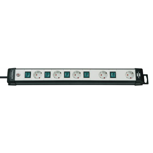 Brennenstuhl Premium-Line Technics extension lead 5-way black/light grey 3m H05VV-F 3G1,5 individually switched sockets with special socket arrangement for charger 1951550600